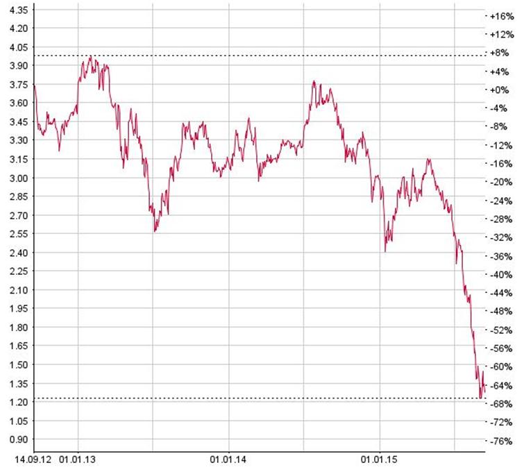 Im Durchschnitt der 189 erfassten Länder liegt die Inflation bei weniger als 2%. Deflation, also ein real sinkendes Preisniveau, war in 17% der Länder festzustellen, während nur 7% der Länder eine zweistellige Inflation aufweisen. Langfristig, wie man es auch betrachten mag, ist der übergeordnete Trend zur Disinflation intakt und könnte innerhalb kürzester Zeit in eine „schlechte“ Deflation übergehen, eine Schuldendeflation, die in einer Abwärtsspirale von Zwangsliquidationen, Insolvenzen und Abschreibungen endet. China fällt aufgrund der schieren Grösse besonders ins Gewicht bei einer Betrachtung der Weltwirtschaft. Dass es an die Substanz geht, zeigt sich schon daran, dass die Devisenreserven um 94 Mrd. US-Dollar im August alleine abnahmen, der vierte rückläufige Monat in Folge, um zugunsten des schwachen Yuan zu intervenieren. Die Devisenreserven betragen immer noch 3,56 Billionen US-Dollar, also 3 560 Mrd. Dollar. Die englische Trillion entspricht den deutschen Billionen, die englischen Billionen unseren Milliarden, da kann es schon mal zu Umrechnungsfehlern kommen, wie bei einem deutschen Minister vor langer Zeit, der meinte, 100 Millionen seien eine Milliarde. In Brasilien hat sich das Bild des wirtschaftsliberalen Musterknaben in das Gegenteil gewandt. Die Wachstumsabschwächung, die fehlgeleiteten Mega-Investitionen in Sportstätten für Fussball WM und Olympische Spiele, der gigantische Korruptionsskandal beim grössten Unternehmen und Staatsunternehmen Petrobras u.a. Faktoren haben zu einer veritablen Regierungs- und Staatskrise geführt. Die Währung ist abgestürzt, die sozialen Probleme geraten ausser Kontrolle. Von den BRICS macht einzig Indien einen unverändert guten Eindruck, was Wachstum und volkswirtschaftliche Kernzahlen anbelangt.