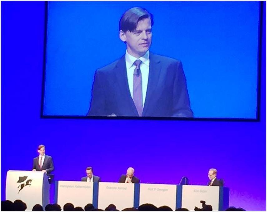 Bereits in der Begrüssungsansprache machte Jornod in seiner gewohnt charismatischen Art deutlich, was die Aktionäre von «ihrer» NZZ erwarten dürfen und was nicht. Er verwies dabei auf die 2013 eingeschlagene Strategie, den Fokus auf die Publizistik zu legen, statt in medienferne Geschäftsbereiche zu diversifizieren. Jornod betonte in diesem Zusammenhang nochmals die Stärke der NZZ in puncto Qualität der Publizistik. Wachsen wolle man daher im Lesermarkt und im neuen Bereich der Business Medien. Ausserdem wies er wieder auf den statutarischen Auftrag der AG für die Neue Zürcher Zeitung und das Primat der Publizistik hin. „Wir sind kein Medienunternehmen wie jedes andere“, rief Jornod gegenüber den Aktionären in Erinnerung. Ziel der NZZ Mediengruppe sei es nicht primär, eine möglichst hohe Rendite zu erwirtschaften, sondern die Existenz der hervorragenden Neuen Zürcher Zeitung sicherzustellen. „Jeder Aktionär sollte das wissen, bevor er eine NZZ-Aktie kauft“, sagte der Verwaltungsrat klipp und klar. Anschliessend zeigte er anhand von verschiedenen Massnahmen auf, dass die neue Strategie der NZZ Mediengruppe in 2015 zu greifen begonnen habe. Das Unternehmen arbeite heute viel datengetriebener als früher, verfüge über moderne Datenbanken und Systeme, nutze Synergien innerhalb der Gruppe stärker und habe die eigene Verkaufsorganisation etablieren können. Dennoch gebe es eine Vielzahl an Herausforderungen, vor denen die NZZ Mediengruppe stehe. „Unsere Innovationen sollten noch schneller am Markt sein“, erklärte Jornod. Und man müsse in vielen Punkten noch besser werden. Um die besondere Positionierung der Neuen Zürcher Zeitung herauszustreichen, verglich er sie mit Luxusgütern. „Die Neue Zürcher Zeitung ist unique, wie eine Breguet-Uhr oder eine Hermès-Tasche“, so Jornod.