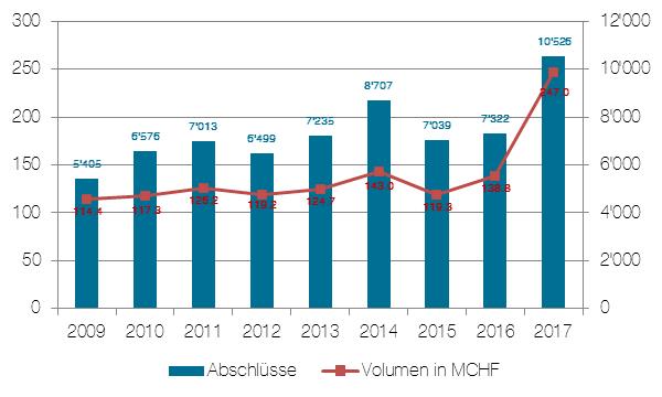 Auch wenn Zur Rose den ausserbörslichen Markt wachgeküsst hat, so ist die gute Entwicklung im letzten Jahr nicht ausschliesslich auf den Erfolg der Onlineapotheke zurückzuführen. Nach Auskunft der Berner Kantonalbank (BEKB) erreichte der Aktienhandel auf der Plattform OTC-X in 2017 einen Umsatz von 247 Mio. Franken (+ 77.9%) und 10’526 Transaktionen (+ 43.7%). Seit der Lancierung der Handelsplattform im Jahr 2004 gab es kein Jahr mit einer vergleichbar hohen Aktivität. Die Zur-Rose-Aktien erreichten lediglich ein Handelsvolumen von rund 40 Mio. Franken. Ein Blick auf die meistgehandelten Aktien zeigt, dass der Handel im letzten Jahr breit abgestützt war. Neben Zur Rose lagen auch die Volumina für die Genossenschaftsanteile der WIR Bank, des Westschweizer Gasversorgers Holdigaz, des Maschinenbauers Reishauer und des Zuger Versorgungsunternehmens WWZ über der 10-Mio.-Franken-Marke.