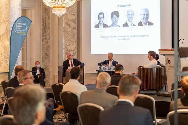 Beschleunigung der Wechsel, „Change the Bank“, das fordere Corona von den Banken, sagt Mazumder. Während Silberschmidt die Politik im Auge hat und warnt, dass man in Krisenzeiten bewährte Instrumente wie Vernehmlassungen nicht über Bord werden sollte.