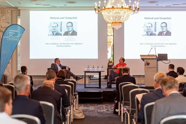 Die Podiumsteilnehmer Armin Brun, CEO der Berner Kantonalbank BEKB, Sita Mazumder, Verwaltungsrätin der Clientis Bank, und Andri Silberschmidt, mit 26 Jahren jüngster Nationalrat, waren sich einig, dass der Lockdown durchaus auch Positives in Gang gesetzt hätte.