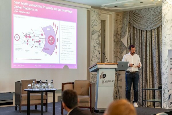 Umarmt hat die Hypi Lenzburg das Fintech neon. Gemeinsam haben sie vor zwei Jahren die in der Schweiz führende OpenBanking-Plattform aufgebaut. Dabei stellt die Hypi Lenzburg das Bank Backend wie z.B. das Konto zur Verfügung, die Kunden nutzen die neon-App und die -Karten. Am Branchentalk gab Simon Youssef, Co-Gründer der neon Bank, die keine eigene Banklizenz hat, Einblick in das Ökosystem neon.