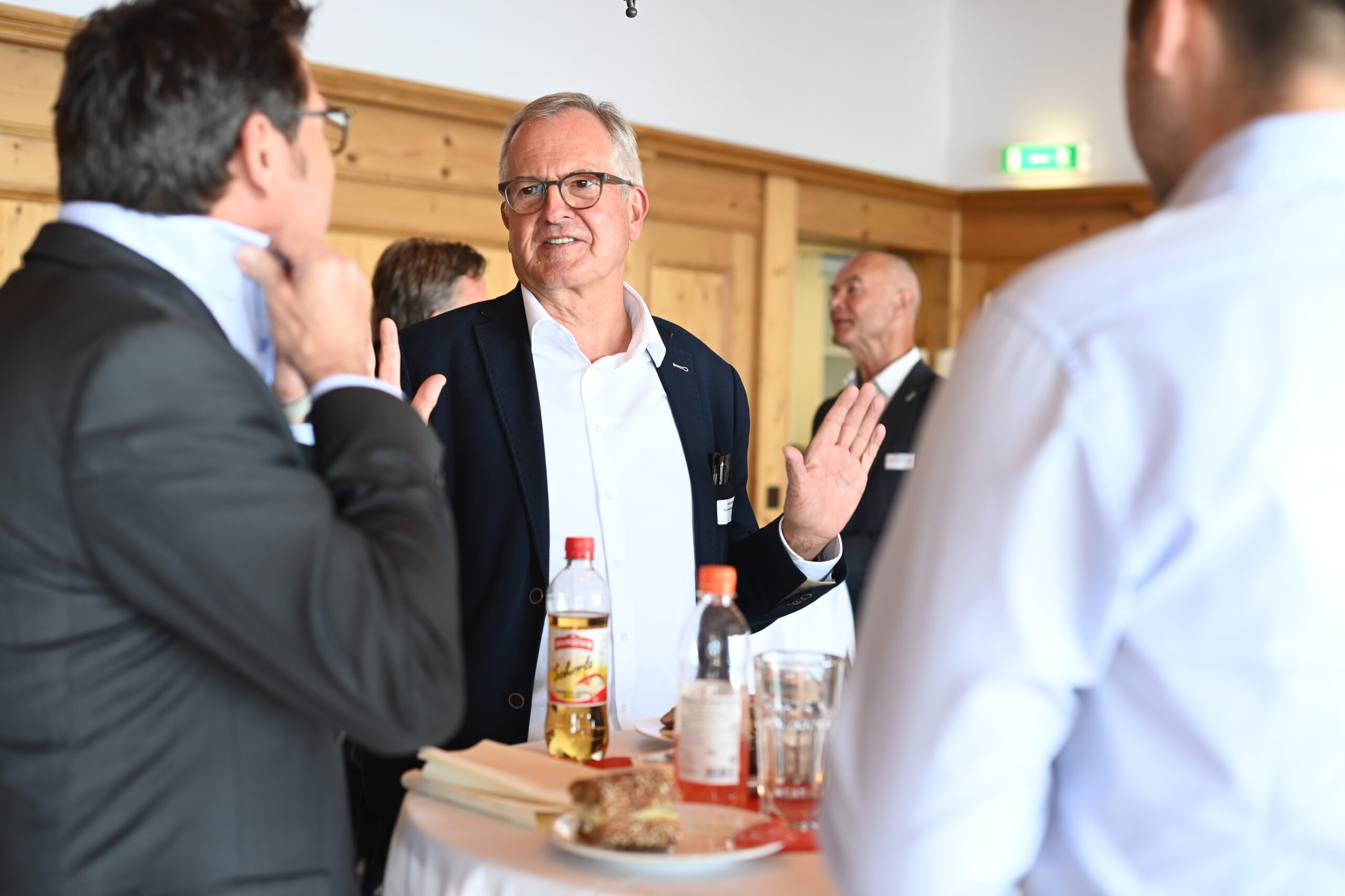 Im Anschluss an die Führung verfolgten die Gäste im bisherigen Panorama-Restaurant Referaten von Norbert Patt, Patrick Vogler (CEO Grand Resorts Bad Ragaz) und Reto Gurtner (CEO Weisse Arena AG) sowie einem Gespräch über Spitzensport im Wintertourismus mit Skirennfahrer Marc Gisin und dem Geschäftsführer der Sportmittelschule Engelberg, Eskil Läubli. Thematisiert wurde ebenfalls Nachhaltigkeit im Tourismus.