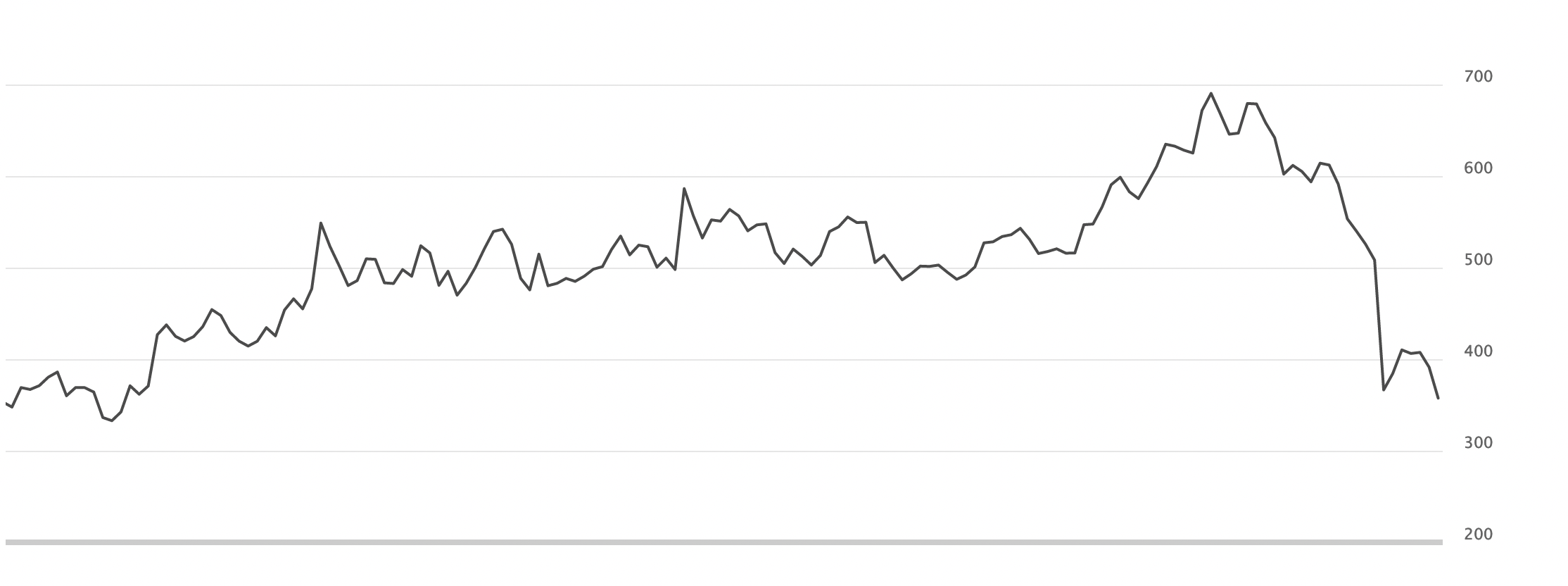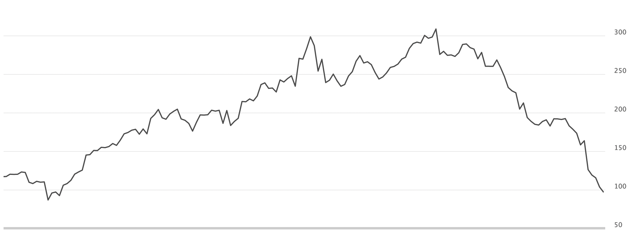 Noch gravierender ist der Fall Paypal. Nach einem Hoch von 310 USD im Juli 2021 war die Aktie bis zum 1. Februar 2022 bereits auf 176 USD gefallen. Die Veröffentlichung der Zahlen liess die Aktie dann an einem Tag weiter auf 132 USD abstürzen. Aktuell liegt der Kurs bei 102 USD. die Market Cap erreicht gerade noch 120 Mrd. USD – und das sind 240 Mrd. USD weniger als noch vor einem halben Jahr. Das Ironische ist, dass das KGV mit 29 immer noch hoch ist, aber wegen dem erwarteten Gewinnwachstum auf 23 für 2022 fallen soll und auf 18 für 2023. Da sich die Börse an der Zukunft orientiert, ist die Bewertung nun zumindest attraktiver als noch vor kurzem geworden.