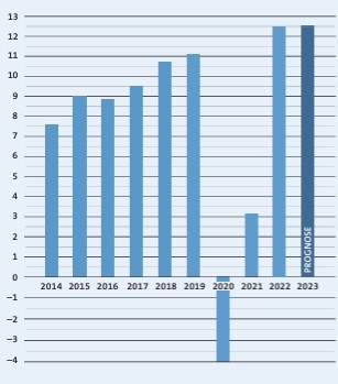 Insgesamt erwartet die SGV AG zusammen mit der SGV Express AG bis Ende Jahr rund 3 Mio. Gäste auf dem Vierwaldstättersee. Dies entspricht einer Zunahme von 10% im Vergleich zum Vorjahr und liegt auf dem Niveau der Rekordzahlen von 2018 und 2019. Der Verkehrsertrag der SGV AG inklusive der SGV Express AG wird per Ende 2023 rund 40 Mio. CHF betragen. Dies ist eine Steigerung von knapp 17% gegenüber dem Vorjahr und von 14% gegenüber 2019. Damit bestätige die SGV AG ihre strategische Stossrichtung, die darauf abziele, höhere Durchschnittserträge pro Passagier zu generieren.