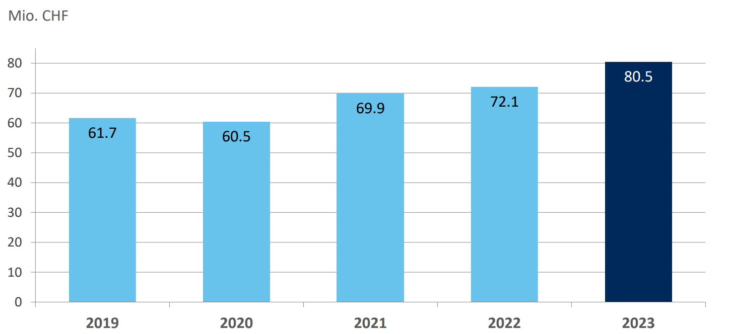 Beim Personalaufwand sind einerseits die teuerungsbedingten Lohnerhöhungen zu berücksichtigen. Andererseits die Zunahme der Vollzeitstellen um 2,3%. Beim Sachaufwand schlagen sicherlich die höheren Marketingaufwendungen zu Buche, darunter vor allem die Generalversammlungen, welche nach drei Jahren Coronapause im Jahr 2023 erstmals wieder von jeder Clientis Bank physisch durchgeführt wurden. Bedingt durch ein höheres Geschäftsvolumen sind bei BPO, bei der IT durch Investitionen in die Security und Regulation die Kosten im Sachaufwand gestiegen. Gerade die Kosten für die Regulation werden in den kommenden Jahren wohl noch weiter zunehmen.