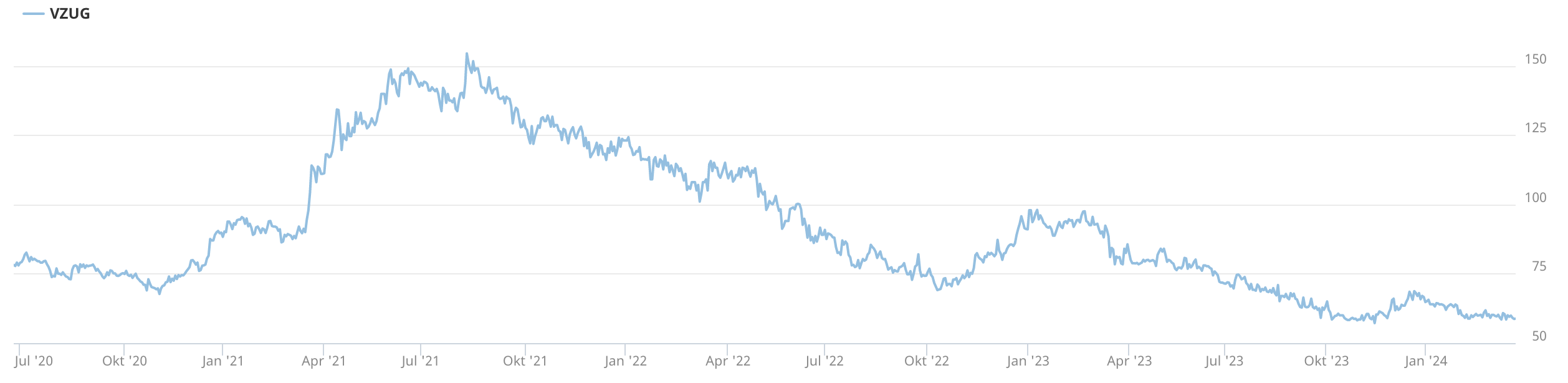 Die Aktie hat ihre Höchstkurse schon lange hinter sich. Seit Ende September 2023 bewegt sich der Kurs in einem Band um die 60-CHF-Marke. Auch wenn sich im Moment noch kein Auslöser für eine substanzielle Aufwärtsbewegung erkennen lässt, die Gewinnsteigerung trotz Nachfrageschwächen zeugt von Stärke. Auf Sicht von zwei bis drei Jahren, wenn die Konjunktur wieder angezogen haben wird, sind deutlich höhere Kurse zu erwarten.