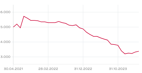 Die Aktien der Plaston Holding AG werden ausserbörslich auf OTC-X gehandelt. Zuletzt wurden 3’400 CHF für eine Aktie bezahlt. In den letzten drei Jahren hat der Aktienkurs um rund einen Drittel verloren. Per Ende September 2023 betrug das Eigenkapital 3’826 CHF pro Aktie. Der Jahresabschluss 2023/24 dürfte das Eigenkapital nochmals weiter reduzieren. Allerdings nimmt der niedrige Aktienkurs bereits einen Teil des zu erwartenden negativen Ergebnisses vorweg. Die Aktien der Plaston Holding AG sollten daher ihren Boden gefunden haben. Bis es zu einem weiteren Kursanstieg kommt, müssen sich aber die eingeleiteten Massnahmen als erfolgreich und die Erholung des Kunststoffgeschäfts der Plaston AG als nachhaltig erweisen.