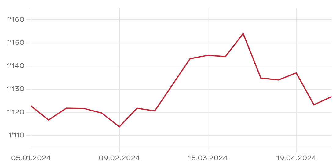 Umgekehrt sieht es bei den ausserbörslich gehandelten Aktien aus. Während der OTC-X Liquidity Index seit Anfang Jahr um 1% gewinnen konnte, stiegen die vier ausserbörslichen Favoriten um durchschnittlich 5%. Eine prozentual zweistellige Performance erzielt Cendres+Métaux mit 11,8%. Das Unternehmen präsentierte einen überzeugenden Jahresabschluss 2023 mit deutlichen Steigerungen auf allen Gewinnebenen. Die Aktienumsätze haben sich dennoch kaum belebt. Im gesamten Monat April wechselten gerade 10 Aktien den Besitzer, seit Anfang Jahr 68. Trotz mancher Unsicherheiten erscheint die Aktie mit einem KGV von 6.4 und einem KBV von 0.56 unterbewertet. Immerhin hat sich die Geld-/Briefspanne verringert.