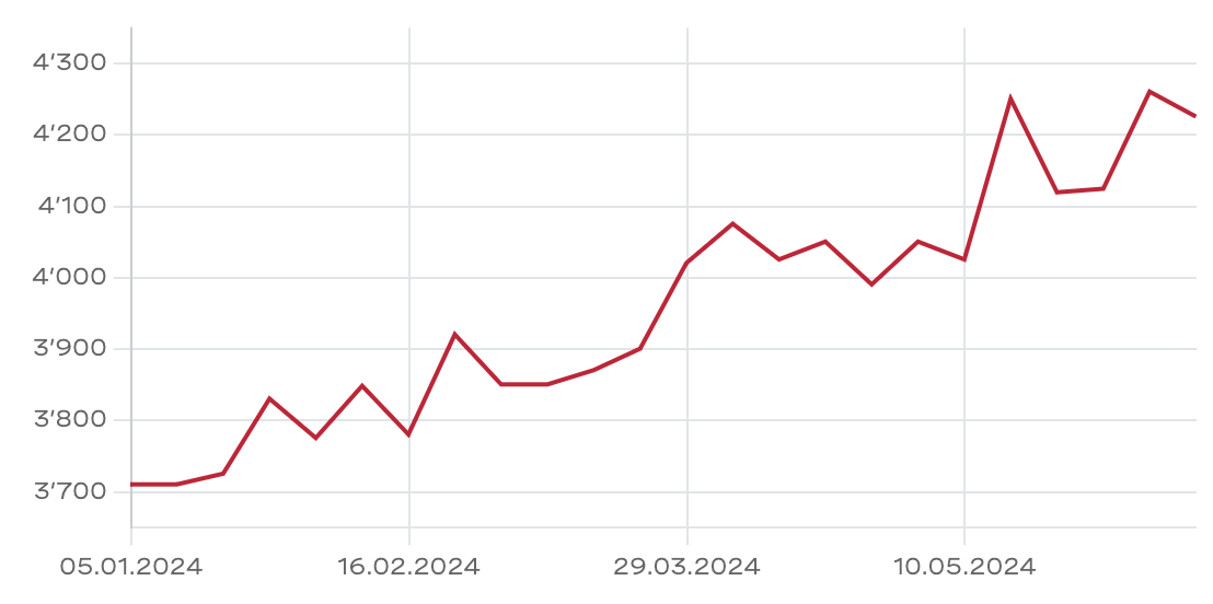 Die Aktie der SSE Holding wird auf OTC-X gehandelt. Der letztbezahlte Kurs beträgt 4300 CHF. Seit Anfang Jahr kletterte die Aktie um 14,2%.