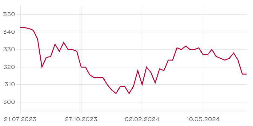 Die Namenaktien Serie A der Weiss+Appetito AG werden ausserbörslich auf OTC-X gehandelt. Zuletzt wurden 310 CHF für eine Aktie bezahlt. Bei einer Dividende von 8 CHF je Aktie, welche für 2023 ausgerichtet wurde, liegt die Rendite bei 2,6%. Das 2023er KGV beträgt tiefe 6.
