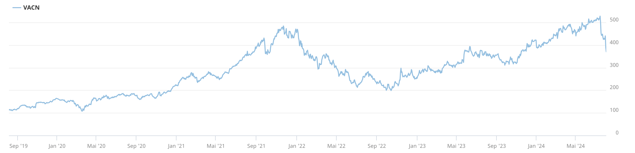 Von dem starken Momentum in der Halbleiterindustrie profitieren nicht nur die Hersteller von fortgeschrittenen Chips wie TMSC und die Chip-Designer wie Nvidia, sondern auch die Unternehmen, die für die Herstellung die nötigen Maschinen und Technologien liefern. Dazu zählt auch die Schweizer VAT, Weltmarktführer in der Vakuumtechnologie. Die Aktie konnte von dem KI-Hype profitieren und kletterte seit Oktober 2022 von 200 CHF auf 528 CHF am 16. Juli des laufenden Jahres. Seitdem stürzte die Aktie in Resonanz zur Trendwende bei Nvidia auf aktuell 391.30 CHF. Damit sind die gesamten Gewinne des Jahres 2024 verloren gegangen. Die Handelsvolumina haben sich seit der Trendwende verdoppelt bis vervierfacht. Das erklärt die ungewöhnlich scharfe Korrekturbewegung, allein am 2. August fiel die Aktie um 11,8%! Es macht aber auch klar, dass es sich um eine hektische Welle von Gewinnmitnahmen handelt und nicht um eine Krise des Unternehmens. Im ersten Halbjahr 2024 nahm das Auftragsvolumen um 74% zu. Der Umsatz veränderte sich zwar wenig, der Reingewinn erhöhte sich jedoch um 12% auf 84 Mio. CHF. Die EBITDA-Marge weitete sich auf 30,1% aus. Die Investitionen in neue Fertigungskapazitäten stiegen um 27,8% auf 40 Mio. CHF. Für das Gesamtjahr erwartet das Unternehmen Steigerungen der Key Performance Indicators, und auch darüber hinaus. Die KI kurbelt die Nachfrage nachhaltig an, vor allem aus China. Die KGV-Bewertung der Aktie hat sich durch den Kursrutsch von 75 auf 55 verbessert, bleibt aber ambitioniert. Wie weit die Tech-Korrektur noch geht, bleibt abzuwarten. Auf jeden Fall bleibt die VAT-Aktie aufgrund der Industrie-Dynamik langfristig vielversprechend. Möglich ist an der Börse zwar alles, aber im Fall VAT ist es sehr wahrscheinlich, dass der langfristige Aufwärtstrend wieder aufgenommen wird, die Frage ist nur, von welchem Zwischentief aus? Es dürfte sich lohnen, Zeit in die Marktbeobachtung zu investieren, um einen günstigen Einstiegszeitpunkt zu finden.