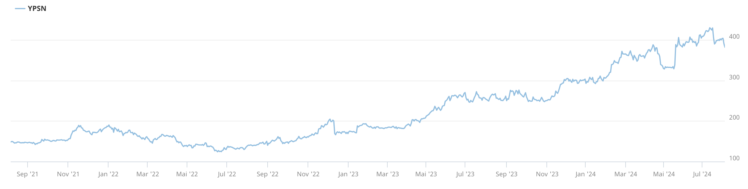 Weniger ausgeprägt verlief die Korrektur bei Ypsomed, einem weiteren Überflieger am Schweizer Aktienmarkt. Seit April 2023 stieg der Kurs von 200 CHF bis auf 432 CHF Mitte Juli. Der Spezialist für Autoinjektoren profitierte von der Hausse bei Eli Lilly und Novo Nordisk, die mit ihren innovativen Therapien für Diabetes und Adipositas einen Börsen-Hype um Abnehmspritzen auslösten. Neben den Tech-orientierten Magnificent Seven war dies neben der KI der zweite Boom, der die Börse in den letzten zwei Jahren bestimmte. Das Geschäft bei Ypsomed läuft prächtig. Die weiteren Perspektiven sind hervorragend. Erklärter Wille von CEO Simon Michel ist es, aus Ypsomed bis Ende der Dekade eine 10 Mrd. USD Company zu machen. Auf der aktuellen Kursbasis von 387 CHF beträgt die Marktkapitalisierung lediglich 5.3 Mrd. CHF. Der Kurs liegt aktuell nur 10% unter dem Hoch und könnte in der laufenden Korrektur auch noch tiefer gehen. Der Unterschied zu anderen Valoren ist, dass die Aktie bereits 2006 über 200 CHF stand, dann sehr lange darunter lag und erst 2017 wieder kurzzeitig die 200-CHF-Marke nahm, um diese erst 2023 nachhaltig und kraftvoll nach oben zu durchstossen. Die Investitionen in Forschung und Entwicklung von 20 Jahren beginnen erst jetzt richtig zu rentieren. Das Pumpengeschäft wurde verkauft. Ypsomed konzentriert sich auf die margenstarken Autoinjektoren und beliefert 28 der 30 Top-Pharma-Konzerne. Das Investitionsniveau bleibt hoch. Das Unternehmen ist Teil eines Oligopols in einem Marktsegment, das nicht zuletzt durch neue injizierbare Therapien starken Aufwind erfährt. Insofern ist die Korrektur eine Einstiegschance bei einem Marktführer, dessen Geschäftsdynamik kaum zu bremsen sein dürfte.