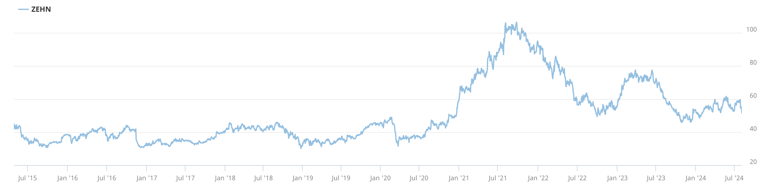 Eher ein Turnaround im klassischen Sinn könnte Zehnder sein. Es ist kein Geheimnis, dass die Neubauaktivität stark rückläufig ist und auch die Bereitschaft zur Renovierung gedämpft ist. Die Inflation, die konjunkturelle Schwäche und die noch erhöhten Finanzierungskosten lasten schon seit längerem auf dem Spezialisten für Heizung, Kühlung und Belüftung. Dennoch hat die Aktie seit Dezember 2023 einen moderaten Aufwärtstrend etabliert. Der aktuelle Kurs von 51.90 CHF liegt weit unter den Hochs von September 2021, als 107 CHF erreicht wurden. Ein Blick auf den Langfristchart macht deutlich, was der Aktie neues Leben einhauchen kann. Bis Dezember 2020 hatte sich die Aktie jahrelang seitwärts bewegt und dann erstmals die 50-CHF-Marke überschritten. Die Hausse damals war vom Renovierungsboom im Rahmen des «Home-Nesting» in der zweiten Phase der Pandemie-Ära getragen worden. Es fällt auch mit dem Tiefpunkt der Nullzins-Phase zusammen. Die Fantasie Mitte des Jahres 2024 entsteht einerseits aus dem tiefen und bisher ungebremsten Fall der Bau- und Renovierungsaktivitäten in für Zehnder wichtigen Märkten wie Deutschland und China, und andererseits aus den anstehenden Zinssenkungen durch Fed, EZB und weiteren Notenbanken. Konkretisieren sich die erwarteten Zinssenkungsschritte, könnte sich der Investitionsstau im Bau- und Renovierungssektor schneller als erwartet ins Gegenteil verkehren. Mit einer Market Cap von nur 480 Mio. CHF ist Zehnder ein Small Cap. Umso beachtlicher ist die Tatsache, dass zahlreiche namhafte institutionelle Investoren wie Vanguard, ZKB, Schroder und Norges Bank zu den Aktionären zählen. Die Positionen könnten bei einer Trendwende am Baumarkt durchaus erhöht werden, was dem Kurs auf die Sprünge helfen würde.