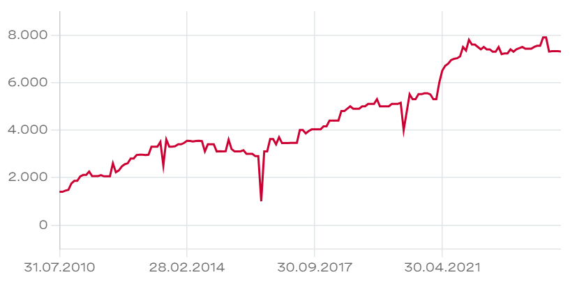 Die Aktien der Konkordia AG werden ausserbörslich auf OTC-X gehandelt. Zuletzt wurden 7'900 CHF für eine Aktie bezahlt. Mit Blick auf die klassischen Kennzahlen wie Dividendenrendite und NAV erscheinen die Titel im Vergleich zu anderen Immobiliengesellschaften wenig attraktiv. Allerdings ist beim ausgewiesenen Buchwert von 2'985 CHF je Aktie per Ende 2023 zu berücksichtigen, dass das Immobilienportfolio nicht den Marktwert, sondern nur den Bilanzwert widerspiegelt. Dennoch bleibt die Konkordia-Aktie ein Titel, der vor allem für langfristig denkende Investoren mit einem Interesse an der weiteren Wertentwicklung des Portfolios und konstanten Ausschüttungen interessant ist.