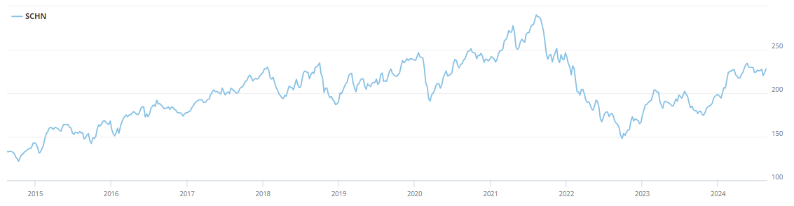 Bei Swatch konnte zwar die Aktie zwischen 1997 und 2014 von unter 80 CHF auf fast 600 CHF klettern, seitdem jedoch geht die Aktie in Richtung Süden. Der aktuelle Kurs beträgt 179 CHF. Ein Ende des Abwärtstrends zeichnet sich bisher nicht ab. Bei Schindler zeigt sich ein anderes Bild. Die Aktie ist stetig gestiegen und hat sich zwischen 1997 und 2021 verzwanzigfacht. Eine heftige Korrektur führte dann bis Ende 2022 zu einer Kurshalbierung. Zwischenzeitlich hat sich ein neuer Aufwärtstrend etabliert, die zuvor erlittenen Kursverluste wurden gut zur Hälfte wieder aufgeholt.