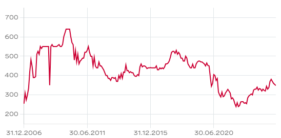 Auch die Titel der Bernexpo, die ausserbörslich auf der Plattform der OTC-X der Berner Kantonalbank gehandelte werden, zeigen langfristig eine Abwärtstendenz, wobei sie sich im laufenden Jahr etwas erholt haben. Erstmals seit drei Jahren konnte 2023 wieder vom Jahresbeginn weg regulär veranstaltet werden. Trotz des Wegfalls von Flächen wegen der Baustelle legte der konsolidierte Umsatz um 27,7% auf 53.5 Mio. CHF zu. Die Neuausrichtung zeigte sich in Partnerschaften im Kulturbereich, mit unterschiedlichen Veranstaltern wurden Konzerte der Rockgruppen Muse und Guns N’Roses sowie das Hip-Hop-Festival Spex durchgeführt. Das Betriebsergebnis (EBIT) fiel mit 0.1 Mio. CHF wieder positiv aus, nachdem im Vorjahr noch ein operativer Verlust von 0.9 Mio. CHF resultiert hatte. Auf eine Gewinnausschüttung wird verzichtet – das dürfte bis ins Jahr 2026 auch so bleiben.