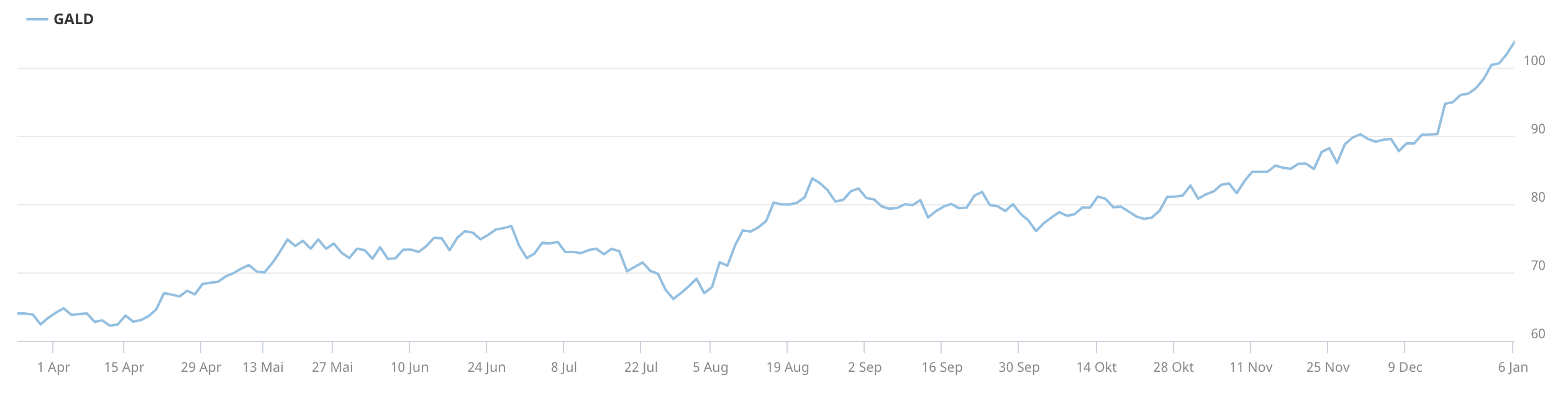 Höhere Emissionserträge erzielten nur die Immobiliengesellschaft Lineage in den USA mit 5.1 Mrd. USD, die in den Bereichen Klimaanlagen, Automation und Robotik tätige Minea Group in China mit 4.6 Mrd. USD, Hyundai Motor India mit 3.3 Mrd. USD und das Modemarken-Unternehmen Puig in Spanien mit 2.9 Mrd. USD. Die Galderma-Performance für Erstzeichner ist mit 89,9% brillant. Gemessen am ersten bezahlten Kurs von 61 CHF beträgt die Performance 65%.
