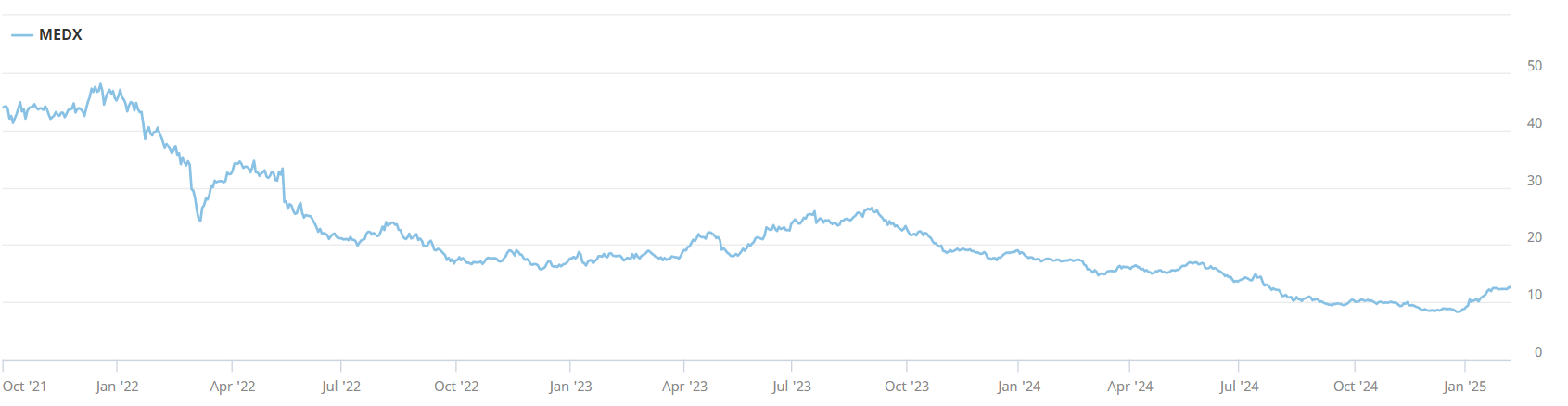 Gemessen am Absturz könnte das Kurspotenzial beim Sulzer Spin-off Medmix sogar noch höher ausfallen. Seit dem IPO im September 2021 ist der Kursverlauf schwach. Das Hoch lag bei 48 CHF, das Tief im Dezember 2024 bei 8 CHF. Allerdings dürfte der Vekselberg-Effekt weniger ausgeprägt sein, da die Beteiligungsquote abgebaut worden war. Der Free-Float von Medmix liegt inzwischen bei 80%. Die zum Zeitpunkt des Börsengangs genannten Finanz-Ziele wurden mehrheitlich nicht erreicht. Zwar ist der Umsatz gewachsen, jedoch schwächer als avisiert. Und die EBITDA-Marge wurde nicht, wie angekündigt, auf 30% ausgeweitet, sondern ist stattdessen kollabiert. Im Zuge der Sanktionen gegen Russland war die Produktion in Polen auf Anordnung der Regierung 2022 eingestellt und dann eine neue Produktion in Spanien aufgebaut worden. Das hat hohe Kosten verursacht. Die seit drei Jahren unveränderte Dividende von 0.50 CHF je Aktie wurde 2022 und 2023 nicht verdient. Nach den Halbjahreszahlen für 2024 wurde die Guidance gekappt. Für 2024 wird keine Gewinnsteigerung erwartet. Besserung soll die «Stabilisierung der Endmärkte» bringen. Anfang des Jahres gab es einen steilen Kursanstieg, nachdem die Investment Boutique Octavian dem zerfallenen Wert eine Kurserholung prognostizierte. Jetzt liegt die Aktie bei über 12 CHF.