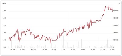 Seit Jahresbeginn hat der NAV der RealUnit-Aktie nochmals leicht auf 1.18 CHF zugelegt. Der Aktienkurs der an der BX Swiss gehandelten Namenaktie bewegt sich leicht über dem NAV. Positiv zu werten ist, dass die RealUnit Schweiz im vergangenen Jahr ihren Bestand an eigenen Aktien und Token verkaufen konnte.