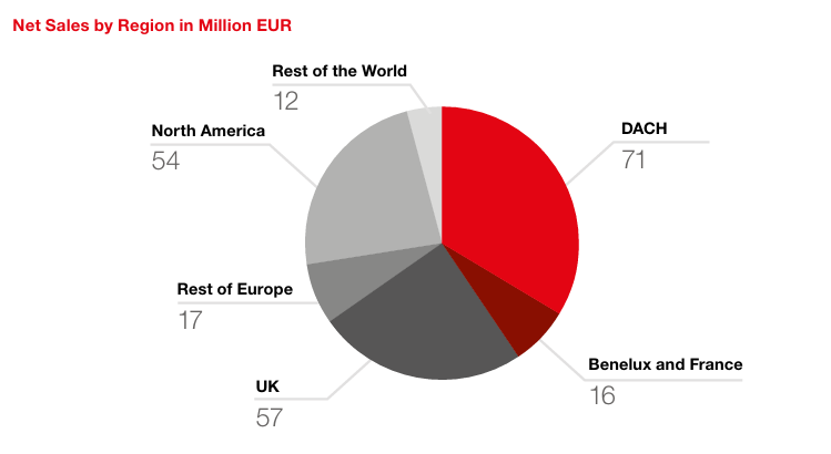 Besonders interessant ist der Blick auf die geografische Verteilung. Auf Europa entfallen 161 Mio. Euro, eine Steigerung um 4,7%. Auf Nordamerika entfallen 54.2 Mio. Euro und damit 32,6% mehr als 2023. Der Rest der Welt steuerte 11.9 Mio. Euro bei und verzeichnete mit 146,7% die höchste Wachstumsrate. Um die Potenziale im Nahen Osten besser erschliessen zu können, wurde 2024 ein Tochterunternehmen in Saudi-Arabien gegründet. Zur langfristigen Finanzierung der Expansion war eine Anleihe im Volumen von 38 Mio. CHF emittiert worden. Weiterhin wurde mit Banken ein Konsortialkredit in Höhe von 45 Mio. Euro vereinbart.