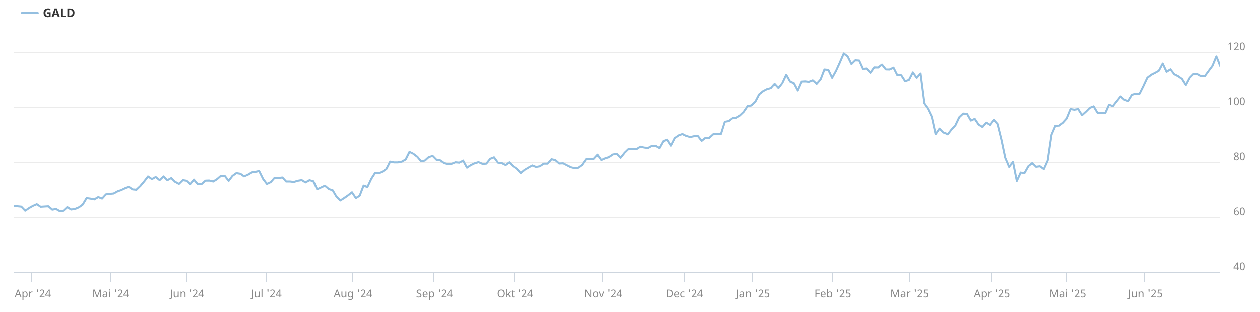 Vielleicht überraschend, ist der Weleda Partizipatiosschein (PS) der wahre Performance-Leader im Juni – und auch im Semester. Hier liegt der Kurs über 40% höher als Anfang Jahr. Bereits im Frühjahr war der Jahresabschluss 2024 vorgelegt worden. Der Umsatz hatte sich um 8,3% erhöht, auf Gewinnebene war die Entwicklung noch eindrucksvoller. Im Juni berichtete CEO Tina Müller anlässlich der GV über 6% Wachstum in den ersten vier Monaten des Jahres. Dies sei, so Müller, ein stärkeres Wachstum als bei den Konkurrenten Beiersdorf, Unilever und L’Oréal. Ein Grund sind die Produktinnovationen der Pflegelinie «Edelweiss und blauer Enzian», die «reissenden Absatz» finden.