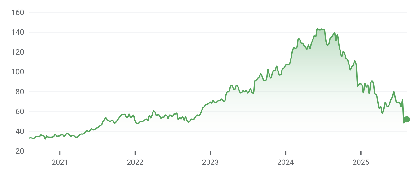 Im Juli 2025 folgte eine weitere Enttäuschung: Novo Nordisk gab eine Gewinnwarnung ab und senkte seine Prognose für 2025 auf ein Umsatzwachstum von 8 bis 14% (zuvor 13 bis 21%) sowie ein operatives Gewinnwachstum von 10 bis 16% (zuvor 16 bis 24%). Hauptgrund waren die schwächer als erwartete Entwicklung von Wegovy und Ozempic in den USA. In diesem Umfeld hat Novo Nordisk mit diesen Medikamenten Marktanteile an Eli Lilly verloren.