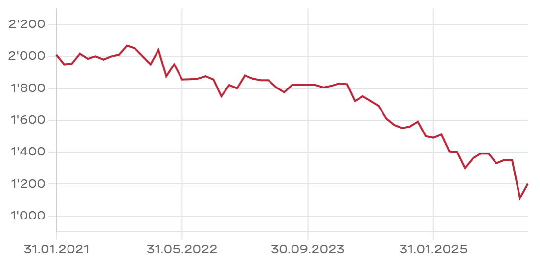 Obwohl die Aktie trotz stabiler Gewinnentwicklung schon seit 2022 einen Abwärtstrend aufweist, löste die Meldung einen erneuten Abverkauf aus, der die ausserbörslich auf OTC-X gehandelte Aktie um 200 CHF auf 1100 CHF drückte. Inwischen ist jedoch eine Trendwende eingetreten. Das ist auf die starken Gewinnzahlen zurückzuführen, die Ende Januar publiziert wurden. Demnach erreichte der Gewinn je Aktie im abgelaufenen Geschäftsjahr 130.63 CHF, nach 109.08 CHF im Vorjahr. Das aktuelle KGV beträgt somit tiefe 9.3. Die Dividende soll, laut Vorschlag an die GV, unverändert 60 CHF je Aktie betragen. Das ergibt eine beachtliche Dividendenrendite von 4,9%.