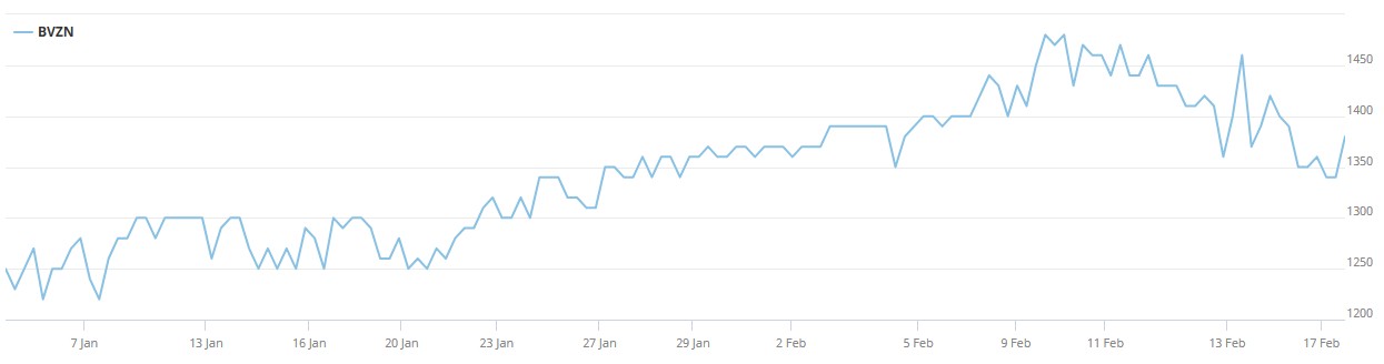 Die Aktien der BVZ Holding AG sind an der SIX Swiss Exchange kotiert. Zuletzt wurden 1’380 CHF für eine Aktie bezahlt. Binnen Jahresfrist haben die Titel um rund 40% zugelegt.