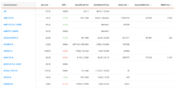 Dies ist ein Auszug der auf der SIX Swiss Exchange gehandelten Aktien. Bild: six-group.com