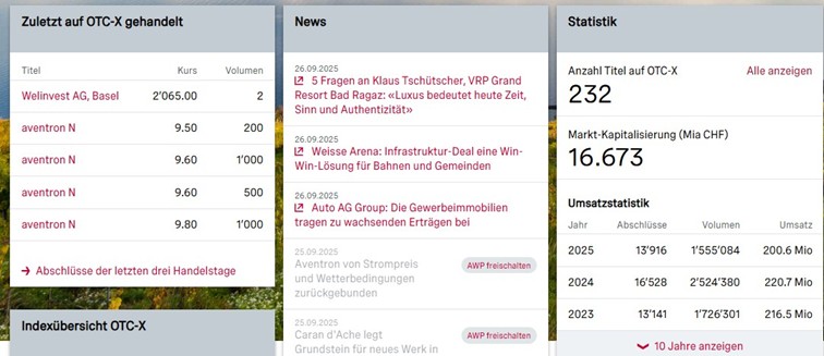 Auf der OTC-X Plattform werden aktuell 232 nicht kotierte Aktien bei einer gesamten Marktkapitalisierung von 16.673 Mia. CHF angeboten. Trotz steigendem Interesse an dieser Art des Aktienhandels verabschieden sich auch immer wieder diverse Gesellschaften vom ausserbörslichen Handel.